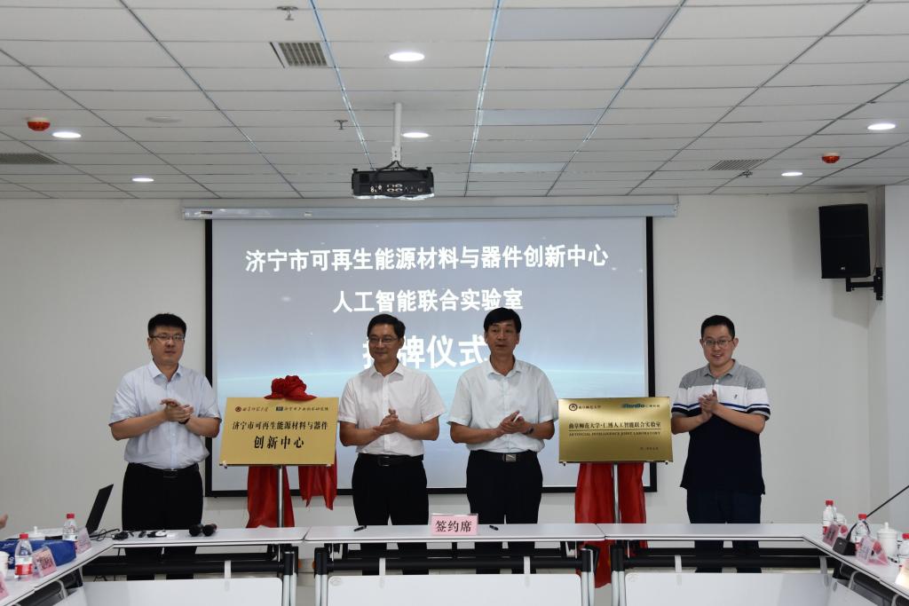 会上,参会领导为“济宁市可再生能源材料与器件创新中心”揭牌,济宁市为该中心资助50万元。威澳门尼斯人软件学院和山东仁博信息科技股份有限公司签订人工智能联合实验室共建协议,并为“人工智能联合实验室”揭牌,山东仁博信息科技股份有限公司将为“人工智能联合实验室”资助100万元。