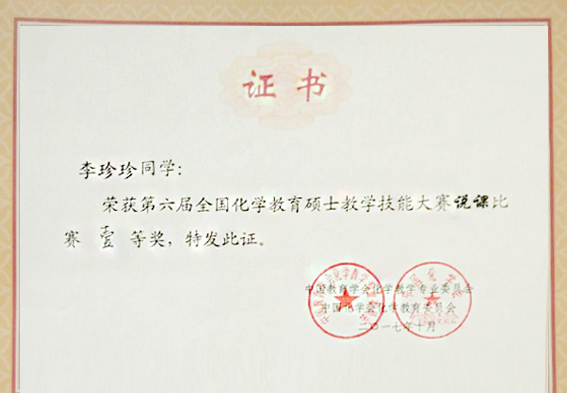我校在全国化学教育硕士教学技能大赛中获特等奖