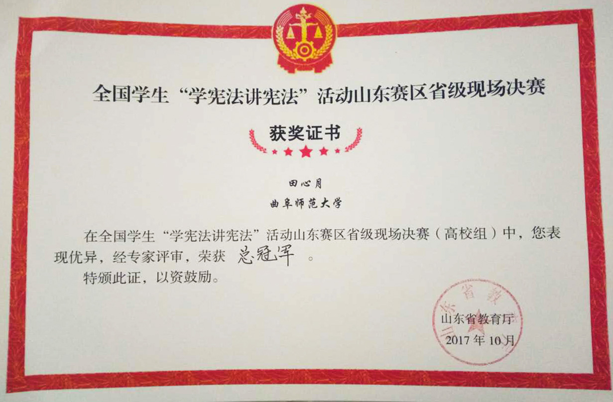 我校学子荣获“学宪法讲宪法”活动山东赛区总冠军
