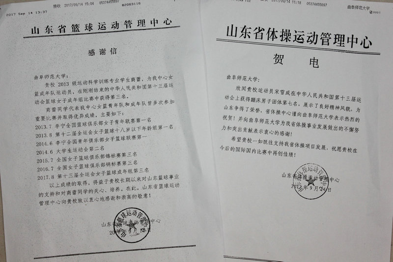 山东省篮球运动管理中心、山东省体操运动管理中心等发来贺电,祝贺我校学子在全运会多个项目上取得的骄人成绩,感谢威澳门尼斯人官网欢迎您对山东省体育事业发展做出的贡献,并祝愿我校在今后的国际国内比赛中再创佳绩。