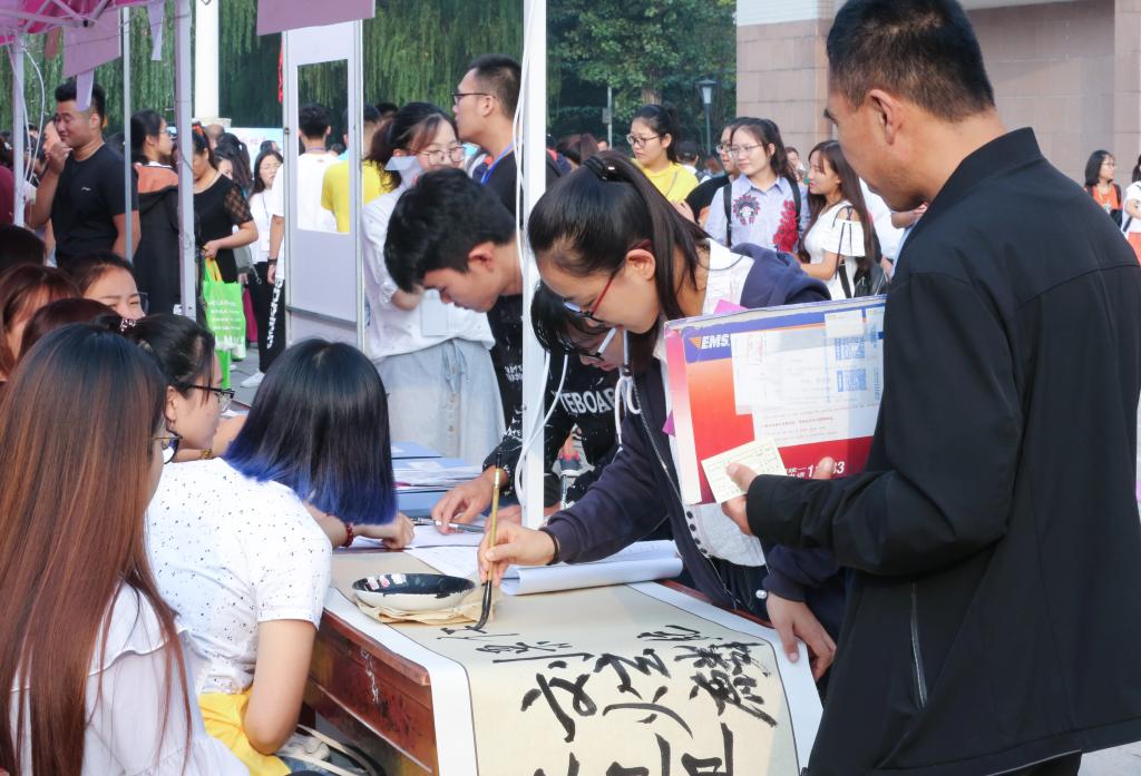人文情怀添彩,曲园印象别样美。书法签名、汉服表演、“亲子”特色明信片、朋友圈KT板、新生家长见面会……一系列饱含人文特色和曲园属性的元素融入迎新过程,让新生和家长充分体会到曲园的魅力与温馨。