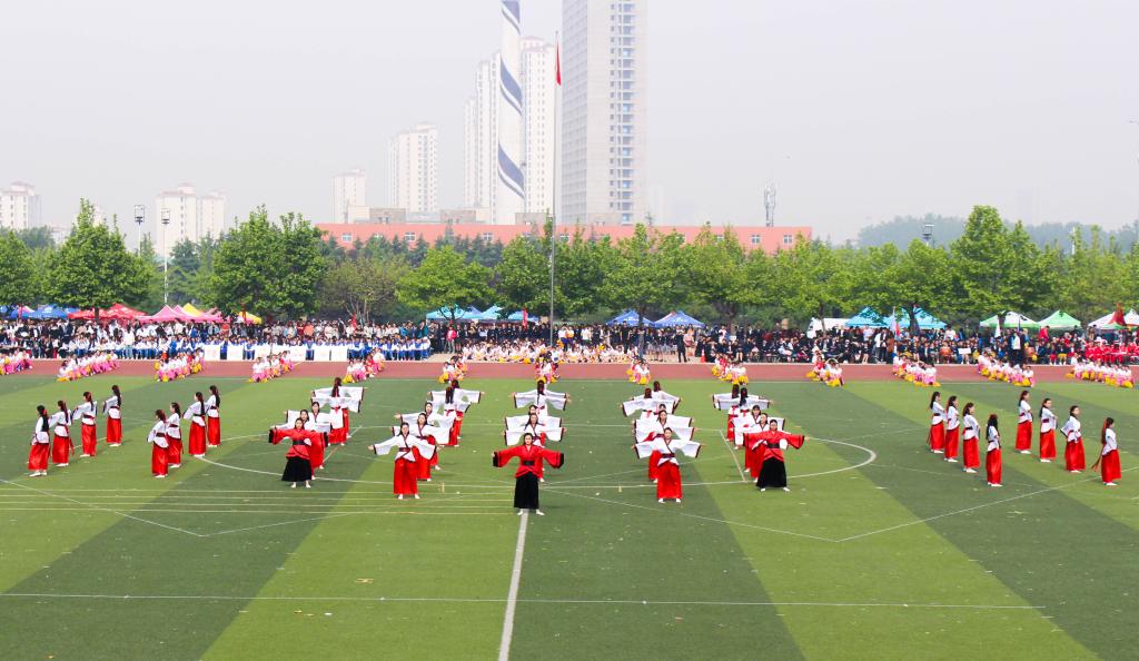 开幕式上,各学院精心准备的文艺表演拉开了帷幕。音乐学院以热情奔放、风格独特的云南民间歌舞《傈阿吃木刮》,表达了对自然的热爱和美好生活的向往;信息科学与工程学院将太极扇舞与现代舞完美融合,刚健而蕴含柔美,体现了兼容并济的胸怀;管理学院以一场《重回汉唐》舞蹈表演,展现了汉舞的柔美与现代舞的刚柔,体现了曲园学习的雅正风清和儒雅风气;经济学院学子身着蓝白相间的院服,以彩色花球和动感节拍,彰显着青春与活力;地理与旅游学院学子摆成12个菱形,围成12朵光芒四射的太阳花,迎着朝阳绽放,昭示着花团锦簇的未来;最后上场的是由各学院联合组成的广播操方阵,动作整齐划一、身姿矫健挺拔,展示了学子们健康欢乐的积极心态。