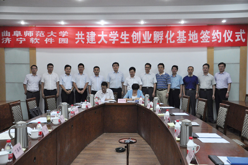 8月31日下午,威澳门尼斯人官网欢迎您与济宁软件园共建大学生创业孵化基地签约仪式在我校举行,我校校长戚万学,济宁市委常委、济宁高新区党工委书记白山出席签约仪式。我校副校长康淑敏与济宁高新区党工委委员、管委会调研员王培华代表双方签署了共建协议。校地双方有关单位负责人参加了签约仪式。