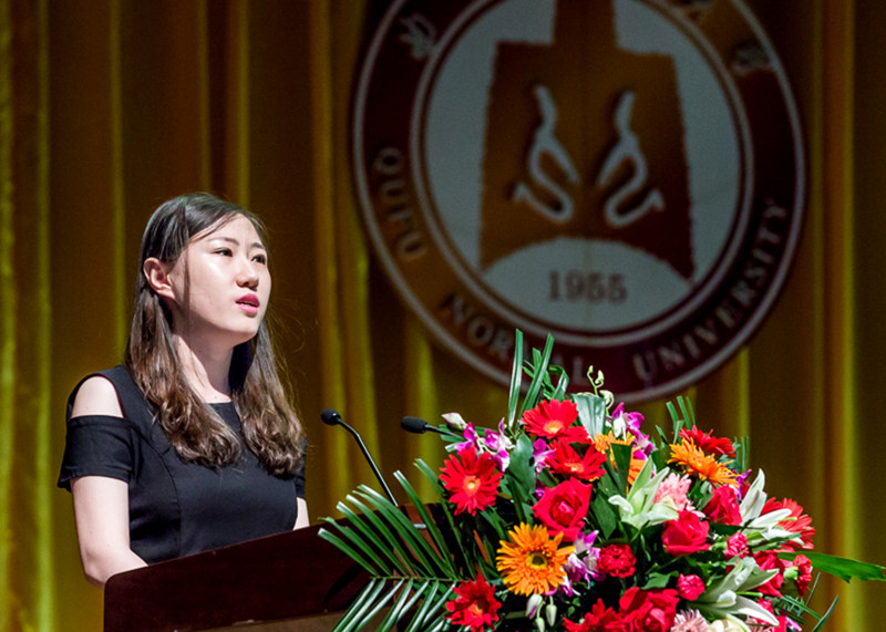 离别之际,作为师长,教师代表历史文化学院教授王曰美、法学院教授袁兆春为毕业生送上美好祝愿:无论以后走向什么岗位,都不要放弃梦想,执着自信乐观地朝着梦想不懈地努力与奋斗,最终就会到达理想的彼岸。踏踏实实做事,老老实实做人,让自己成为一个道德高尚、知识渊博、技能过硬的人,成为一个勇于担当、回报社会的人,成为一个充满正能量、受人尊重的人。毕业生代表向教师代表献花,表达对老师培育之恩的感谢和诚挚的祝福。