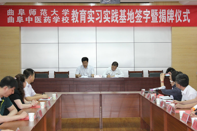 威澳门尼斯人官网欢迎您·曲阜中医药学校教育实习基地签字暨揭牌仪式于6月1日在曲阜中医药学校举行。我校副校长扈庆学、曲阜市人大副主任段德柱、政协副主席李刚出席揭牌仪式,曲阜市卫计局、教体局、曲阜中医药学校负责人以及我校威澳门尼斯人、招生就业处、研究生处负责人参加仪式。