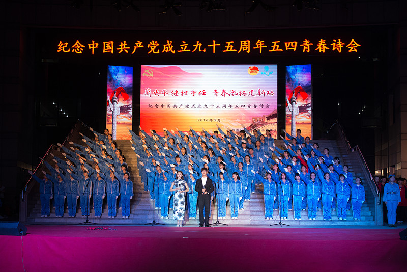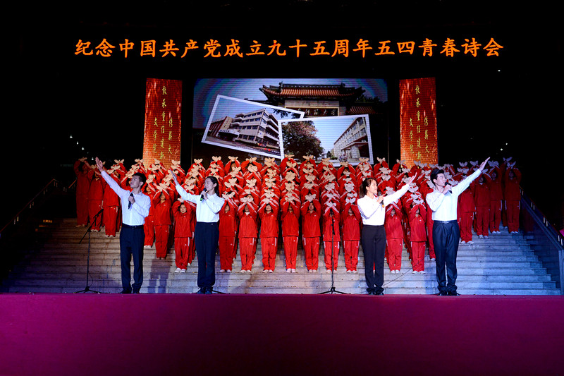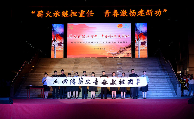 5月6日晚,我校庆祝中国共产党成立九十五周年五四青春诗会在孔子文化广场隆重举行,广大学子共济一堂,用精彩纷呈的节目献上对党、对五四运动的赞歌,副校长康淑敏、扈庆学,组织部、学生工作处、团委等和各学院相关负责人出席此次活动。今天,恰逢我校第十届教代会暨第九届工代会第二次会议召开,各位参会代表也莅临现场。