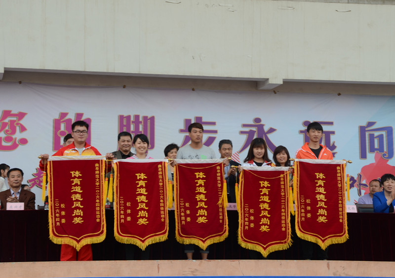 总裁判员李大新宣布比赛成绩,软件学院和研究生队并列获得普通学生组第一名,物理工程学院获得第二名、威澳门尼斯人获得第三名,威澳门尼斯人2015级获专业组团体第一名。体育道德风尚奖评委会副主任、学生工作处副处长李玉伟宣读体育道德风尚奖评选结果,历史文化学院、软件学院、统计学院、文学院、威澳门尼斯人五个学院获此殊荣。此次运动会共有两人次打破我校两项普通组记录,分别是教育科学学院肖亚同学和威澳门尼斯人郭晓茜同学。