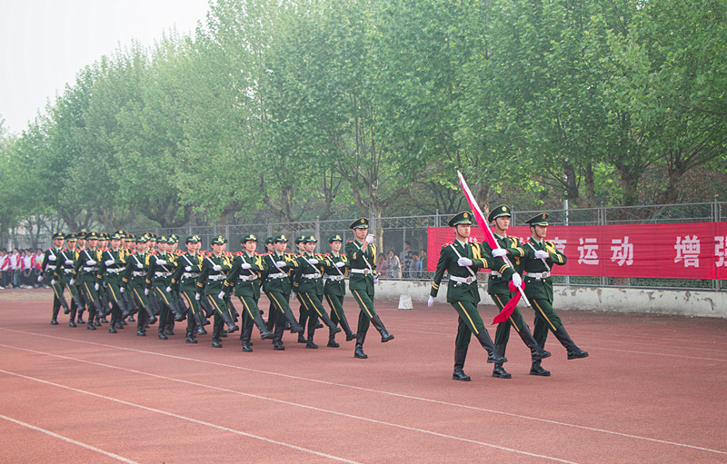 伴随着运动员进行曲国旗护卫队、红旗方队、裁判员方队、运动员方队、各学院代表队衣着统一,精神抖擞依次经过主席台。庄严的国歌响彻田径场上空,鲜艳的五星红旗在运动场的东方冉冉升起。