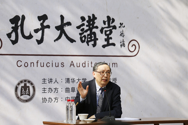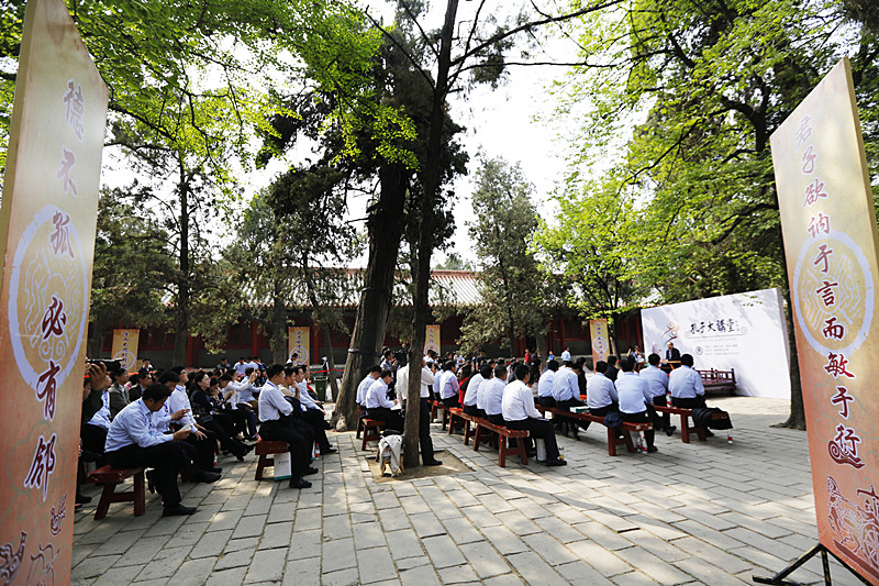 校长戚万学在开讲仪式上致辞,他说:“今天,我们心怀敬仰,在大成殿前、杏坛之上共同开启‘孔子大讲堂’的帷幕。第一讲,我们非常荣幸地邀请到了当代著名哲学家、哲学史家、中央文史研究馆馆员、中国哲学史学会会长、孔子文化奖获得者、山东省特聘‘儒学大家’,当代儒学研究的旗帜性学者陈来先生主讲。”