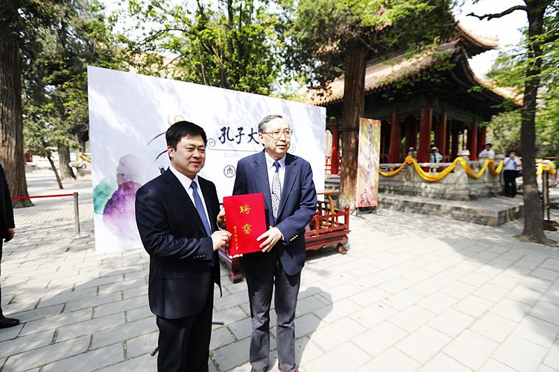 “文庙地灵松柏古,讲坛春暖杏花香。”4月13日下午,在2500年前孔子布道讲学的杏坛,由我校倾力打造的系列高端学术讲座“孔子大讲堂”隆重开讲。著名哲学家、哲学史家、孔子文化奖获得者、清华大学国学院院长陈来教授做了题为《<论语>的德行伦理体系》首场讲座。校长戚万学为陈来教授颁发了特聘教授聘书。