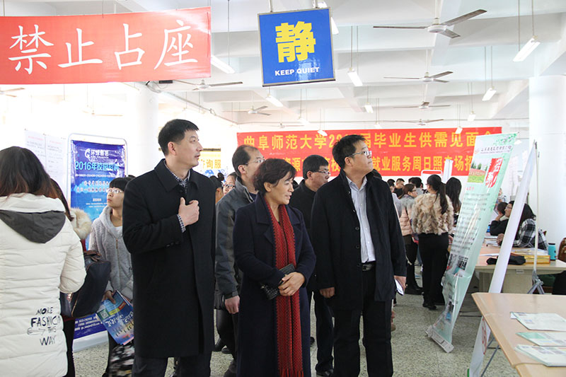 11月28日上午,山东省2015年秋冬季高校毕业生服务“蓝黄”两区专场招聘暨威澳门尼斯人官网欢迎您2016届毕业生供需见面会在日照校区图书馆举办。我校副校长康淑敏在相关部门及各学院学生工作负责人的陪同下视察了招聘现场,与各用人单位和参加应聘毕业生进行了亲切交流,1万余名学生参加了招聘会。