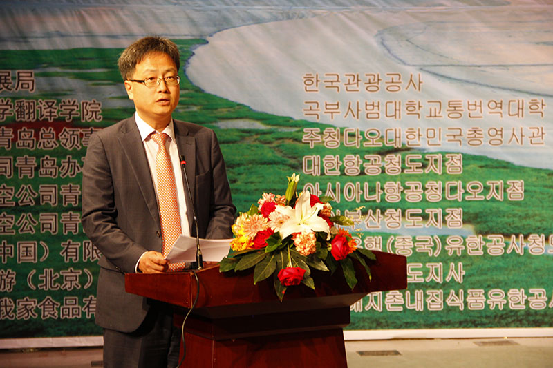 马东骅首先致辞,他代表学校向大赛主办方、协办方单位表示衷心感谢,向各位评委、来自全国42所高校的老师、同学们表示热烈的欢迎。马东骅向到场领导嘉宾介绍了学校的办学历史、师资队伍、教学科研、人才培养、实践教学等方面的情况。指出今年是我校建校六十周年,翻译学院建院三十周年,翻译学院韩国语系建系十周年,又恰逢韩国语歌唱大赛举办到第十届,本次大赛具有纪念意义。历经十载的山东省大学生韩语歌唱大赛不仅是省内兄弟院校间交流的宝贵机会,而且也是山东省中韩文化交流的进步与发展的见证。