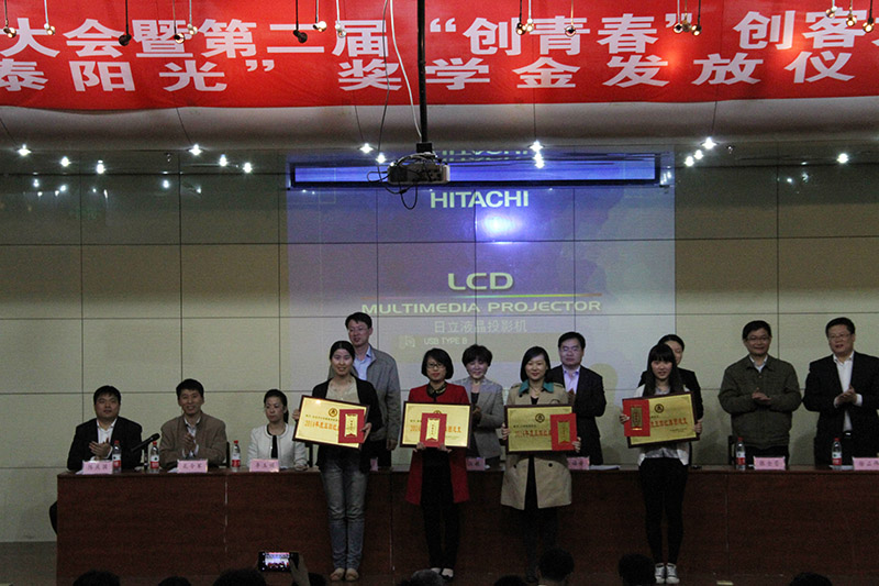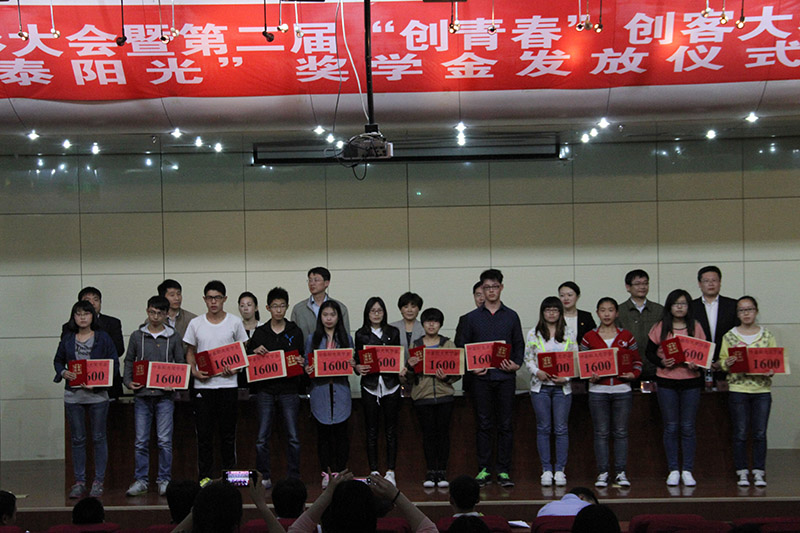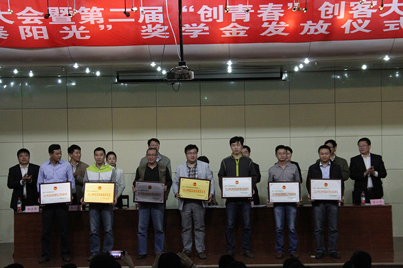 与会领导为获奖的五四红旗团总支、优秀青年工作者、五四先进团总支、共青团特色工作创新单位和共青团组织建设先进单位以及2014年度中泰阳光优秀贫困大学生奖学金获得者颁奖。