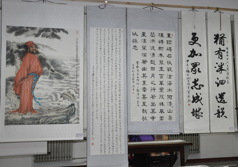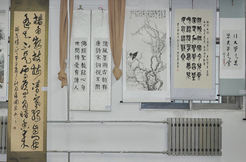 在我校六十周年校庆及元旦来临之际,12月23日,由离退休工作处主办的“贺新年、迎校庆”2015离退休教职工书画展正式开展。副校长扈庆学、离退休老同志、各单位负责人、教师以及书画爱好者参观了展览。