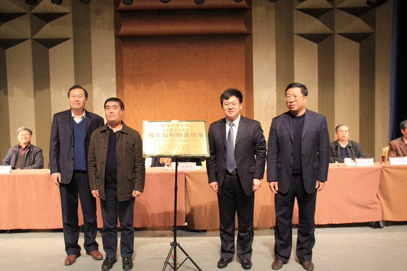 开幕式上,山东省人力资源和社会保障厅刘运处长宣读了在我校设立统计学和马克思主义理论两个博士后科研流动站的决定,并举行了博士后流动站的揭牌仪式。刘连军副主任和刘运处长、陈占安教授和戚万学校长,分别为统计学和马克思主义理论两个博士后科研流动站揭牌,并与数学科学学院、政治与公共管理学院领导合影留念。