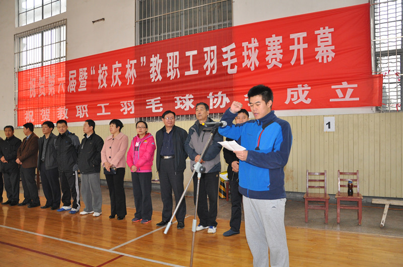 11月15日,由校工会主办,教职工羽毛球协会承办的第六届暨“校庆杯”教职工羽毛球赛隆重开幕。副校长扈庆学、张洪海出席开幕式。