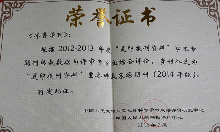 《齐鲁学刊》入选“复印报刊资料”重要转载来源期刊
