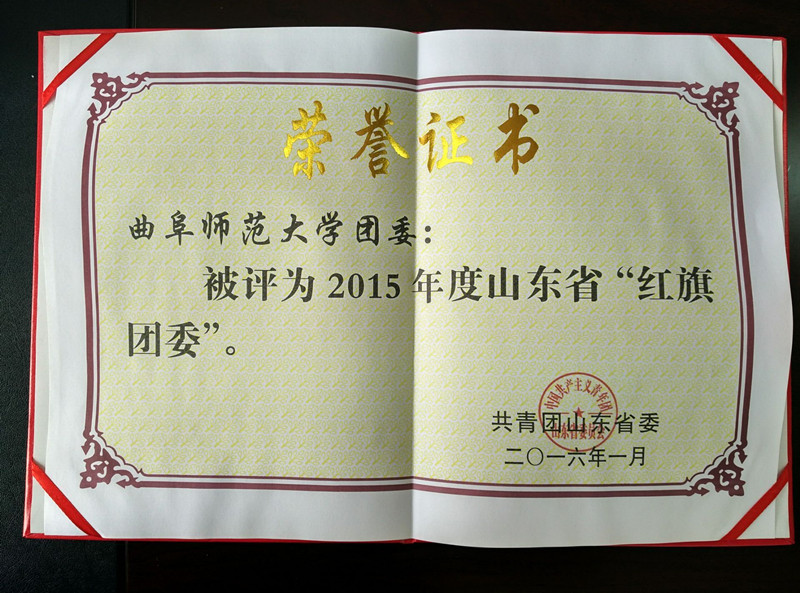 校团委被评为2015年度山东省“红旗团委”