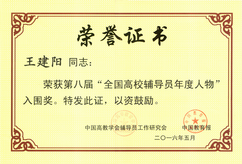 王建阳老师获第八届“全国辅导员年度人物”入围奖